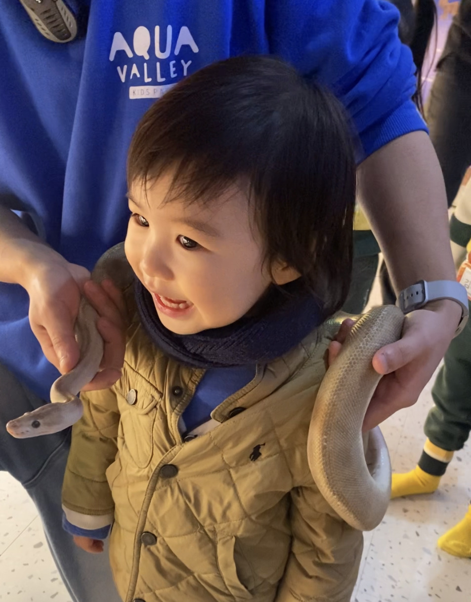 파충류 체험을 도와주실 때도 아이가 겁먹지 않게 표정과 말투 하나하나 상냥하게 배려해주시고, 트니가 용기 낼 때마다 아낌없이 칭찬해주셔서 아이도 더 편안하게 집중할 수 있었던 것 같다. 실제 뱀과 도마뱀을 만져보는데도 울기는커녕 너무 좋아하며 즐기는 모습이 대견했다.